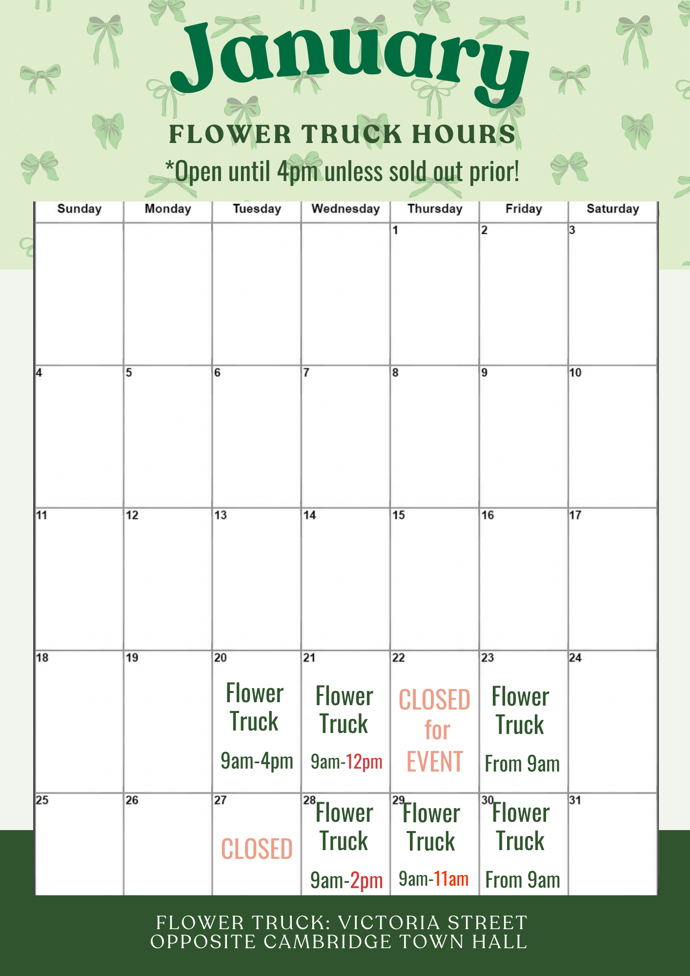 Explore the opening hours of our Floral Studio and Flower Truck for easy access to beautiful blooms.